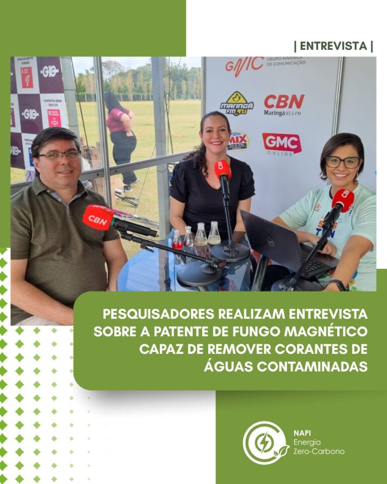 O NAPI EZC (Novos Arranjos de Pesquisa e Inovação – Energia Zero Carbono) celebra mais um avanço significativo no campo da inovação e sustentabilidade. O Prof. Dr. Luiz Cótica (pesquisador do NAPI EZC e coordenador do projeto na UEM) e a Profa. Dra. Andressa Domingos Polli (professora do Programa de Pós-Graduação em Biotecnologia Ambiental) foram os convidados de uma entrevista especial na rádio CBN Maringá para detalhar uma importante conquista: a recente patente do projeto.